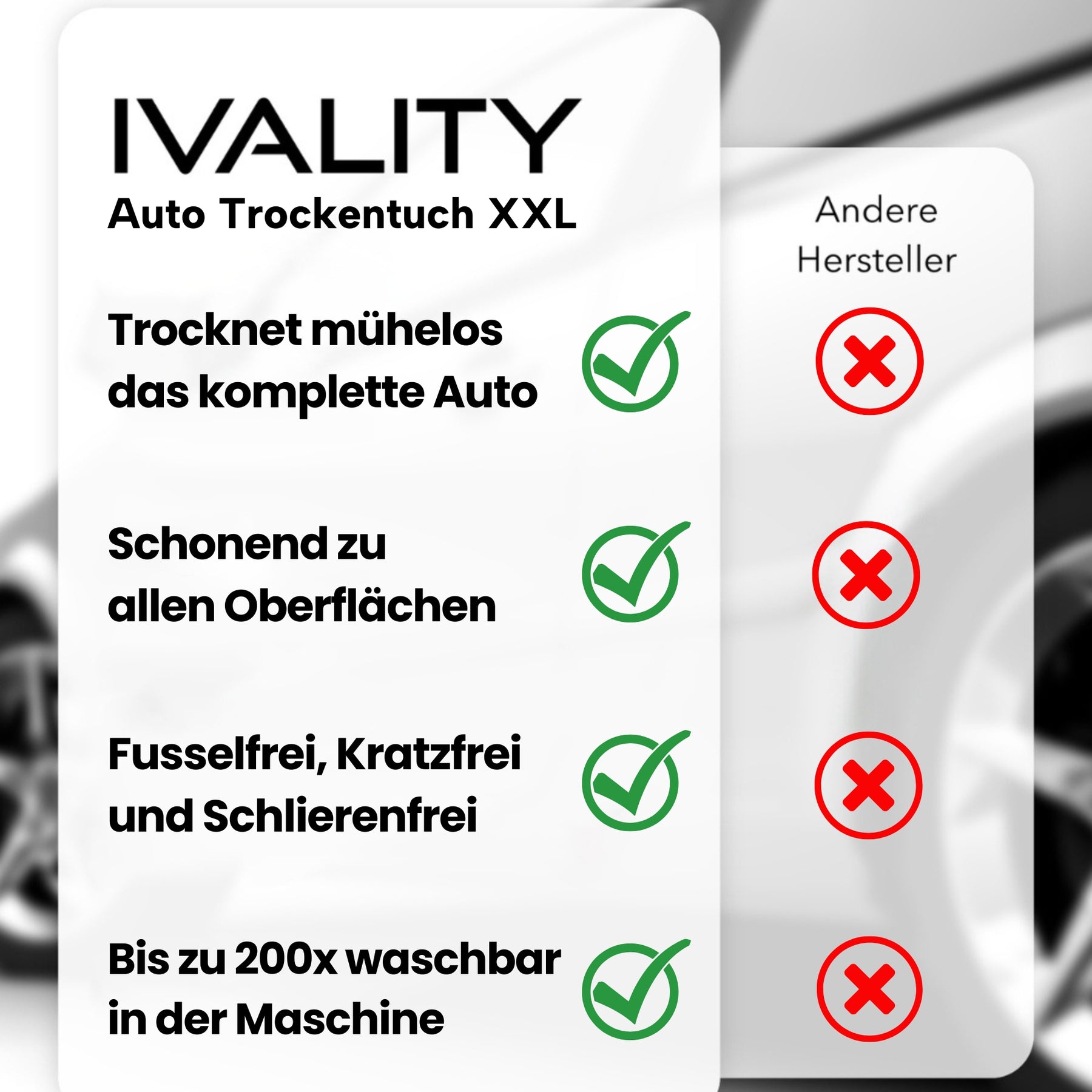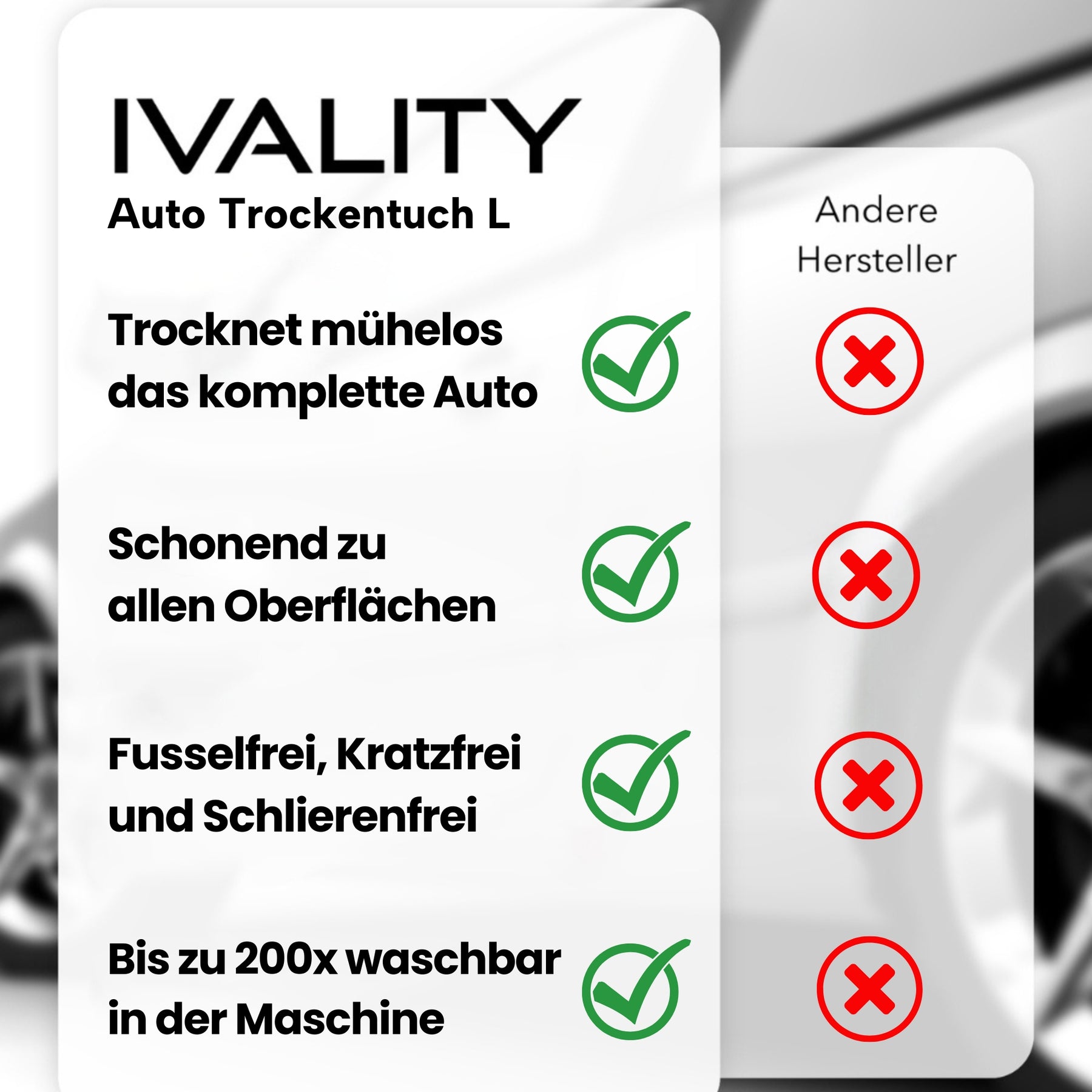 Das saugstarke Dryvality Trockentuch ist das ideale Zubehör für jeden Autofahrer, der sein Auto liebt und pflegt. Es ist ein praktischer Helfer und ein schöner Blickfang.