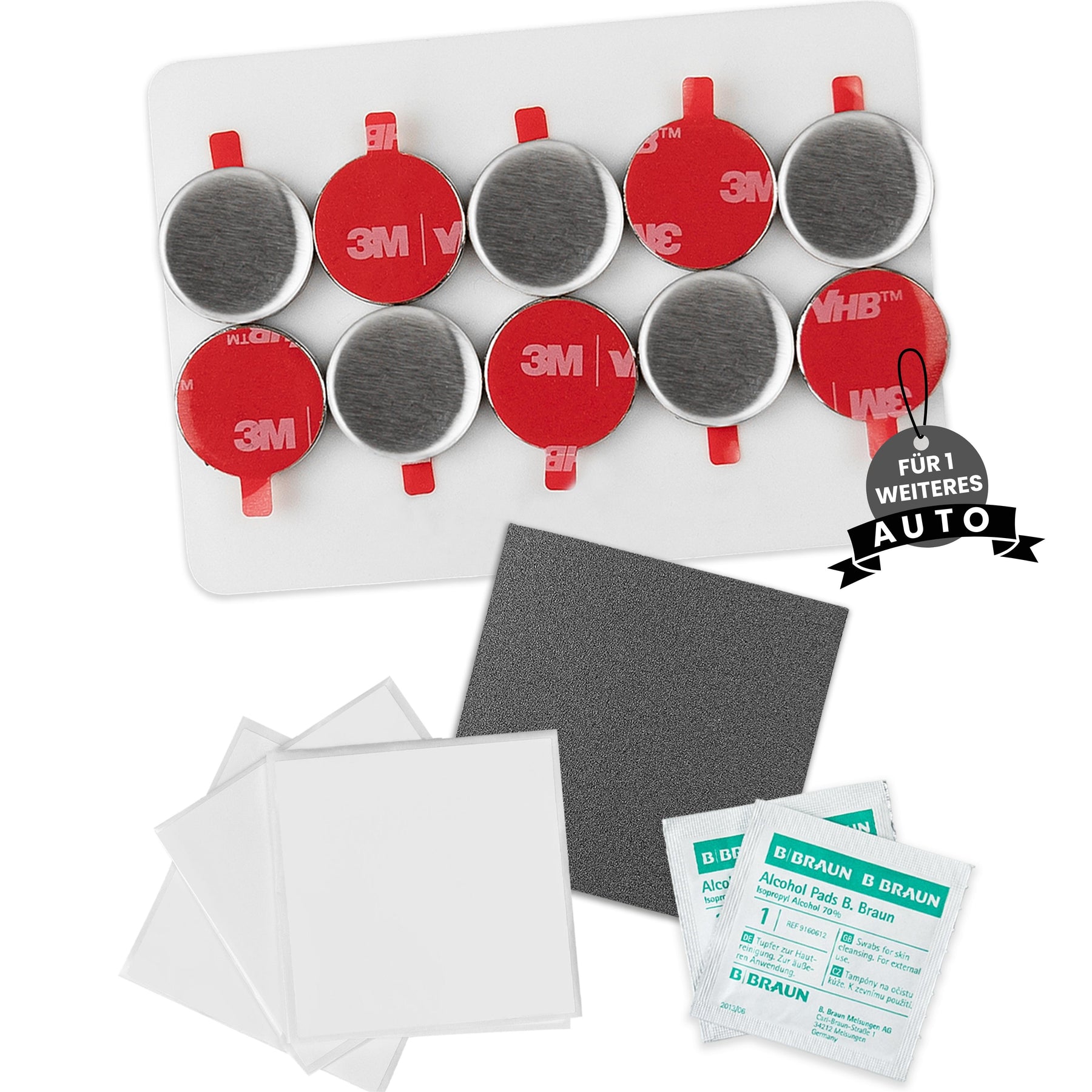 ✅ KOMPLETTSET FÜR 1 KENNZEICHEN – Alles was du für die Montage der magnetische Kennzeichenhalter rahmenlos benötigst. Neben den 20 Magneten sind im Set enthalten, 1x Mikrofasertuch, 1x 3M Gummi Schutzüberzug, 10x Schutzsticker, 2x Alkohol Pads, 1x Schleifpapier sowie eine detaillierte Aufbauanleitung & Montagevideo.