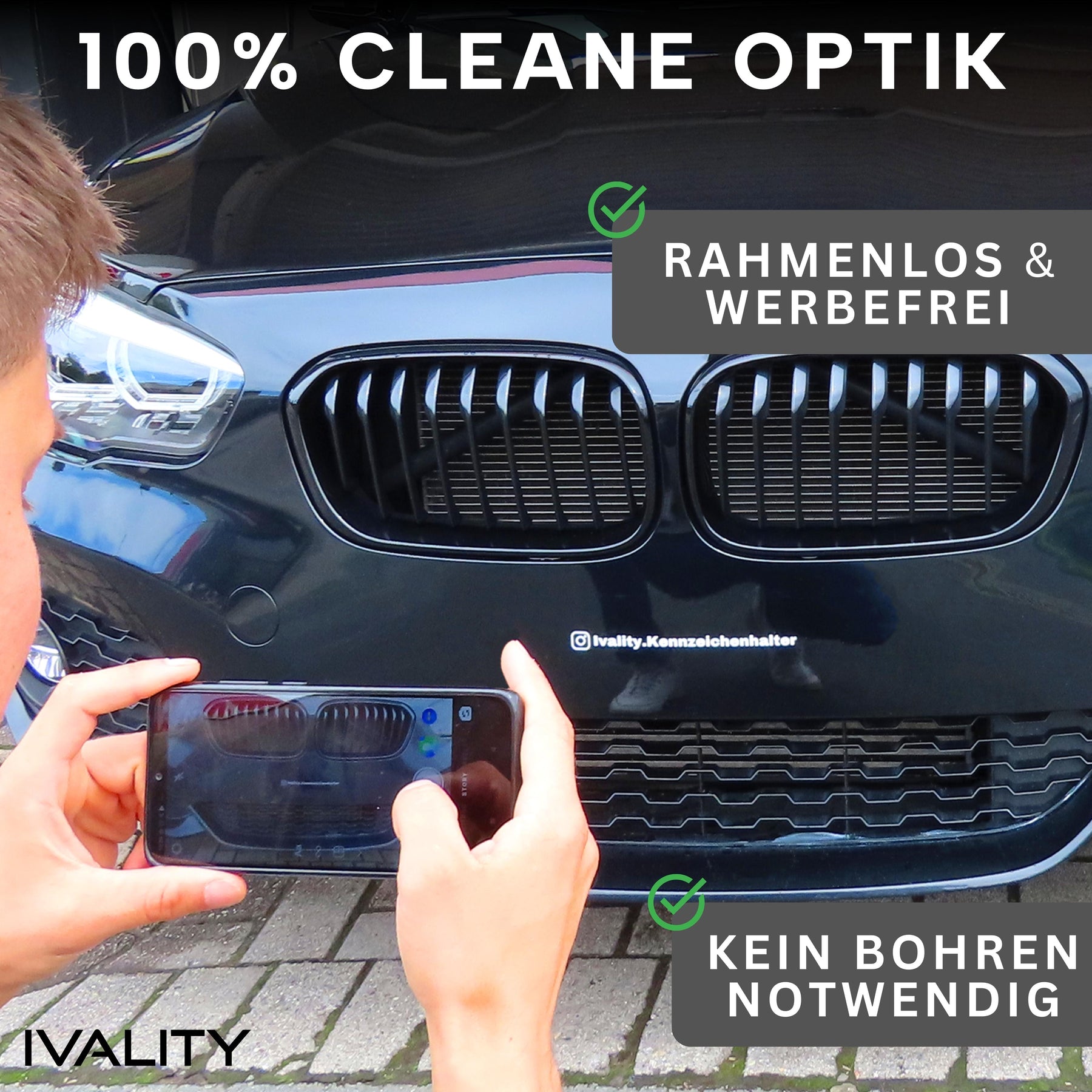 ✅ CLEANE OPTIK – 100% Rahmenlos & Werbefrei. Die Magnet Kennzeichenhalter sind auch nach Abnahme des Kennzeichens komplett unsichtbar. Kein Bohren in die Stoßstange mehr notwendig.