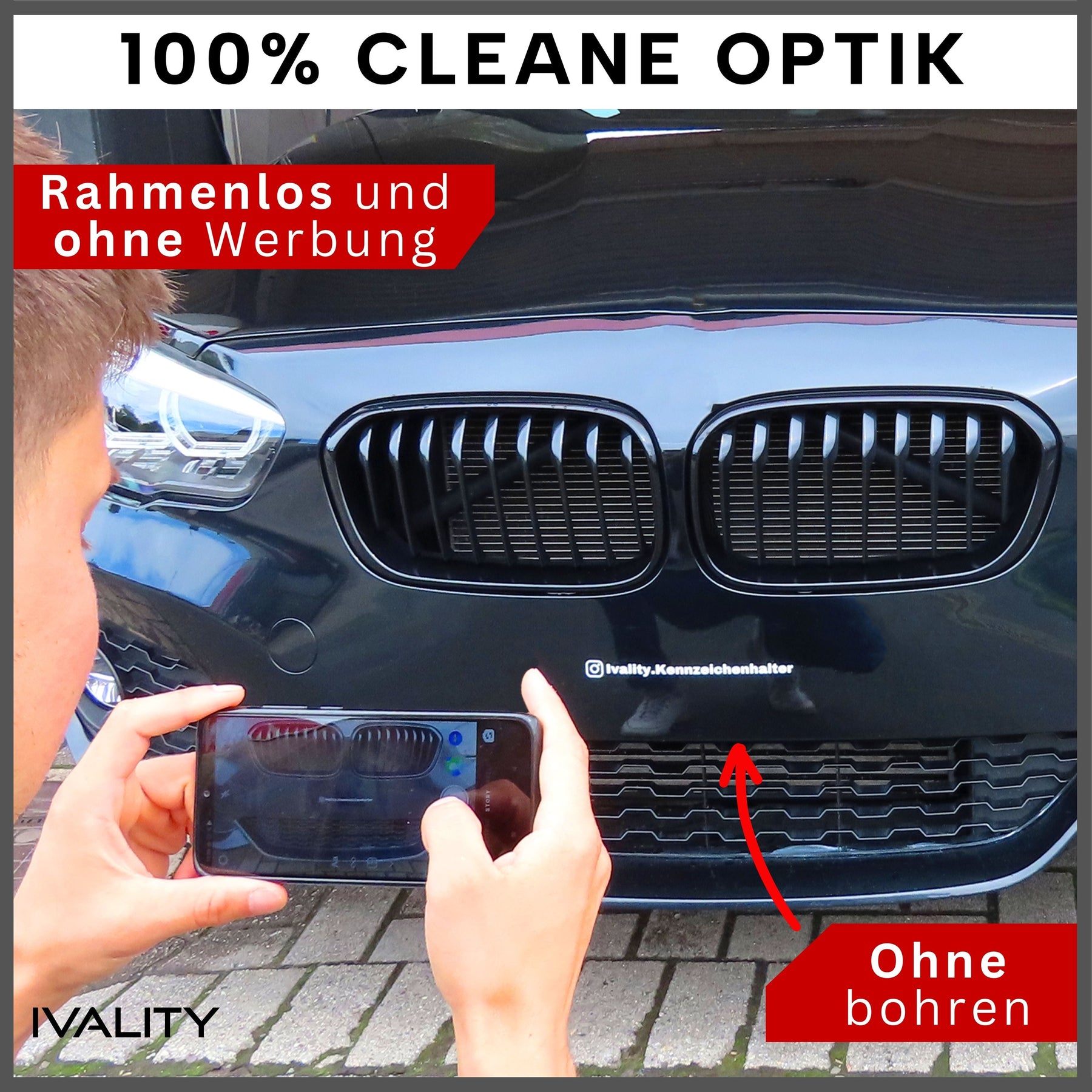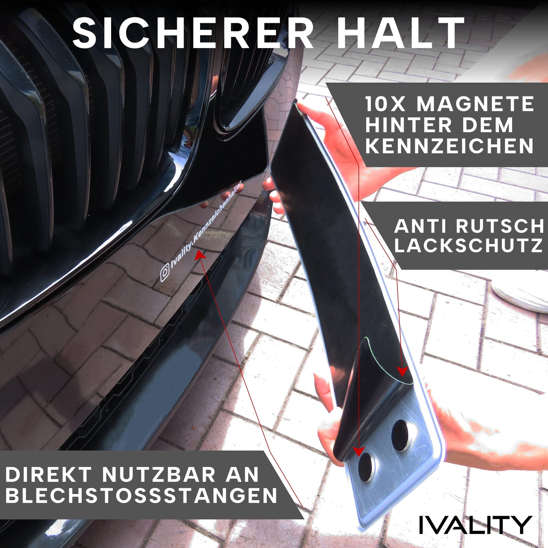 With our license plate holder behind the bumper, you can get rid of brackets with thick edges and advertising forever! Thanks to high-quality workmanship and the selection of the best materials (neodymium magnets, adhesive strips from market leader 3M and anti-slip rubber), our invisible magnetic license plate holder can withstand anything. A must for all car lovers and a real eye-catcher on the road. 100% clean!