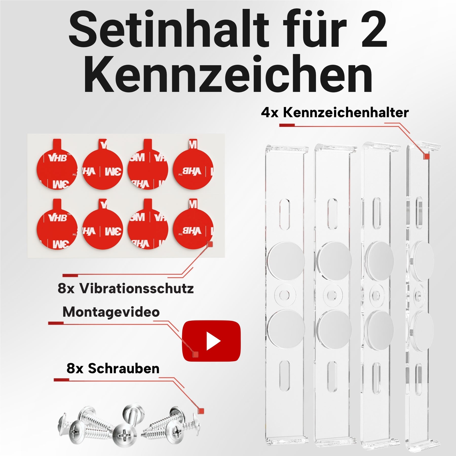 Klick Kennzeichenhalter in schwarz oder transparent für 2x Alu Kennzeichen