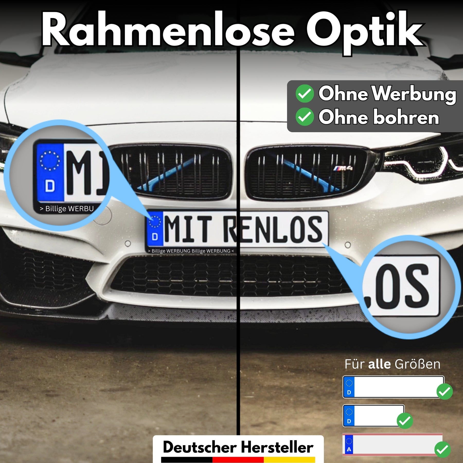 ✅ CLEAN LOOK – 100% frameless & advertising-free. The magnetic license plate holders are completely invisible even after the license plate has been removed. No more drilling into the bumper necessary.