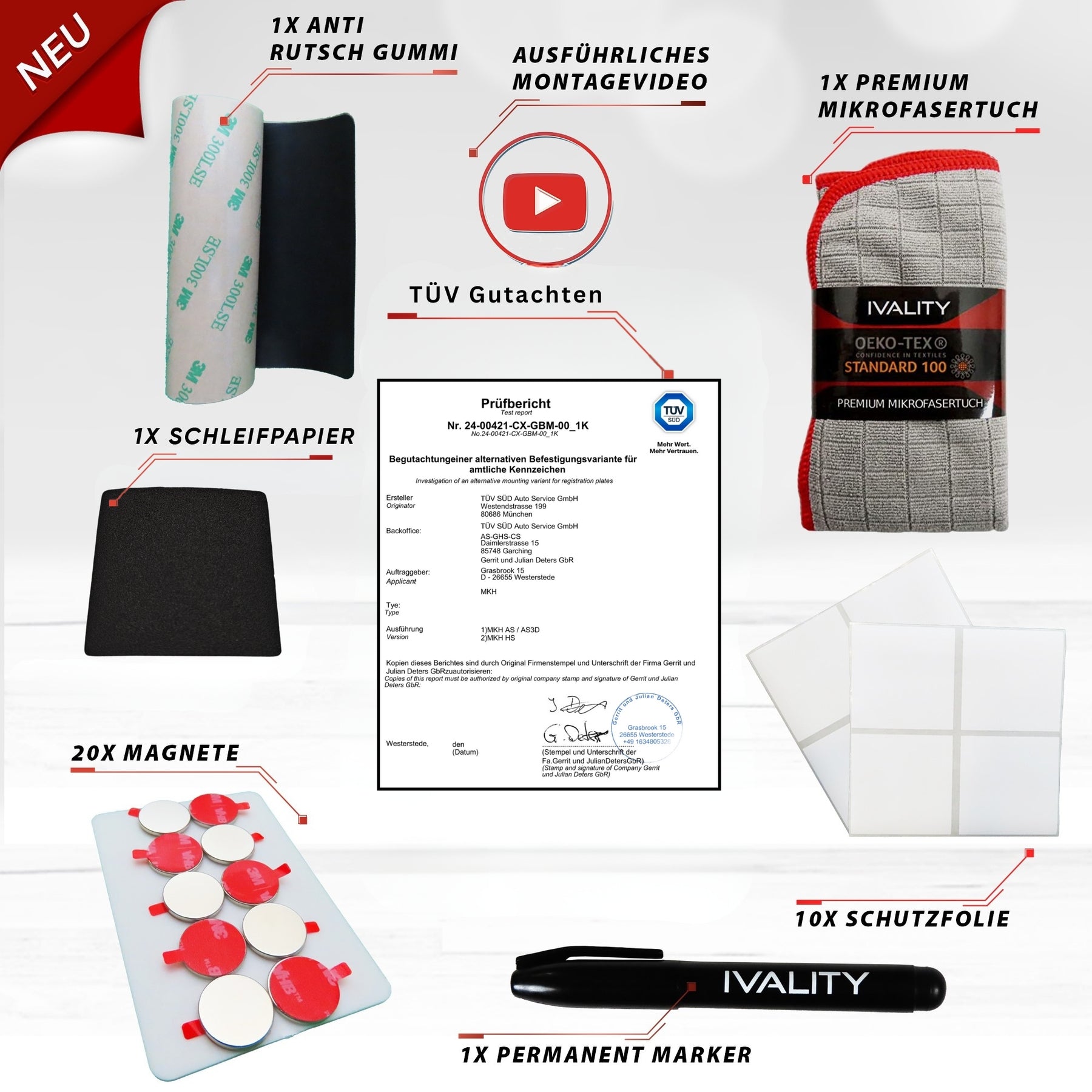 ✅ SAFE ON THE ROAD – Tested up to 350 km/h! The innovative frameless license plate holder guarantees extreme hold through the use of the strongest neodymium magnets, VHB 3M adhesive tape in combination with an anti-slip rubber protective cover.