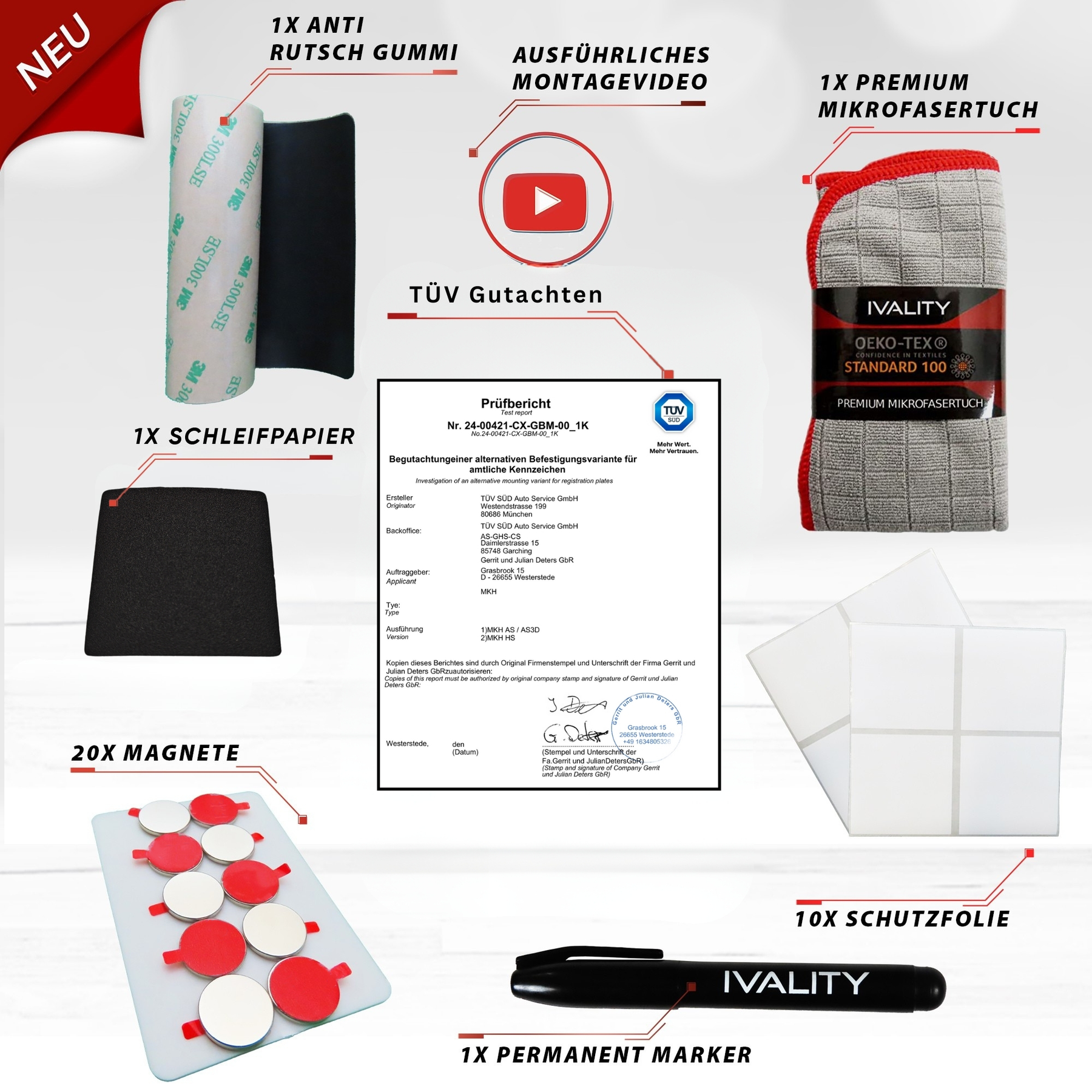Our set contains everything you need to install the license plates. We have provided you with detailed printed and digital assembly instructions, so nothing stands in the way of a smooth installation. An assembly video is of course also available.
